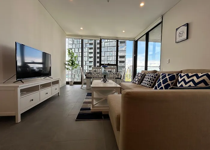 Offering a heated pool, Stadium View Oasis 2Br With Free Parking Sydney apartment is located just a 5-minute walk from State of Origin. This 2-bedroom apartment is situated a mere 0.9 km from Olympic Park train station and a short way from Carter St at Uhrig Rd bus station.